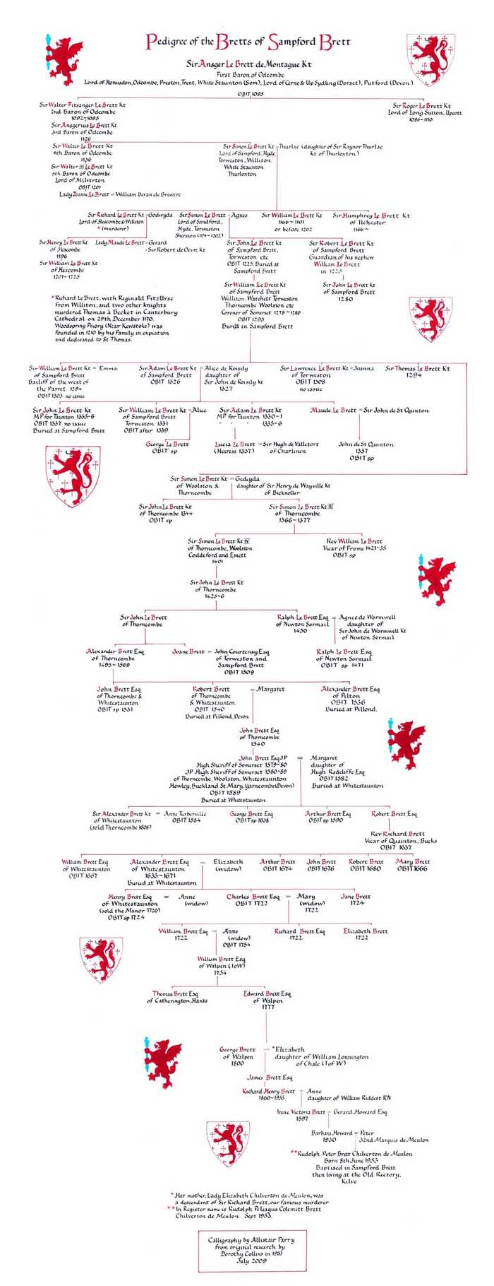 The de Brett family tree - Calligraphy by Alistair Parry.